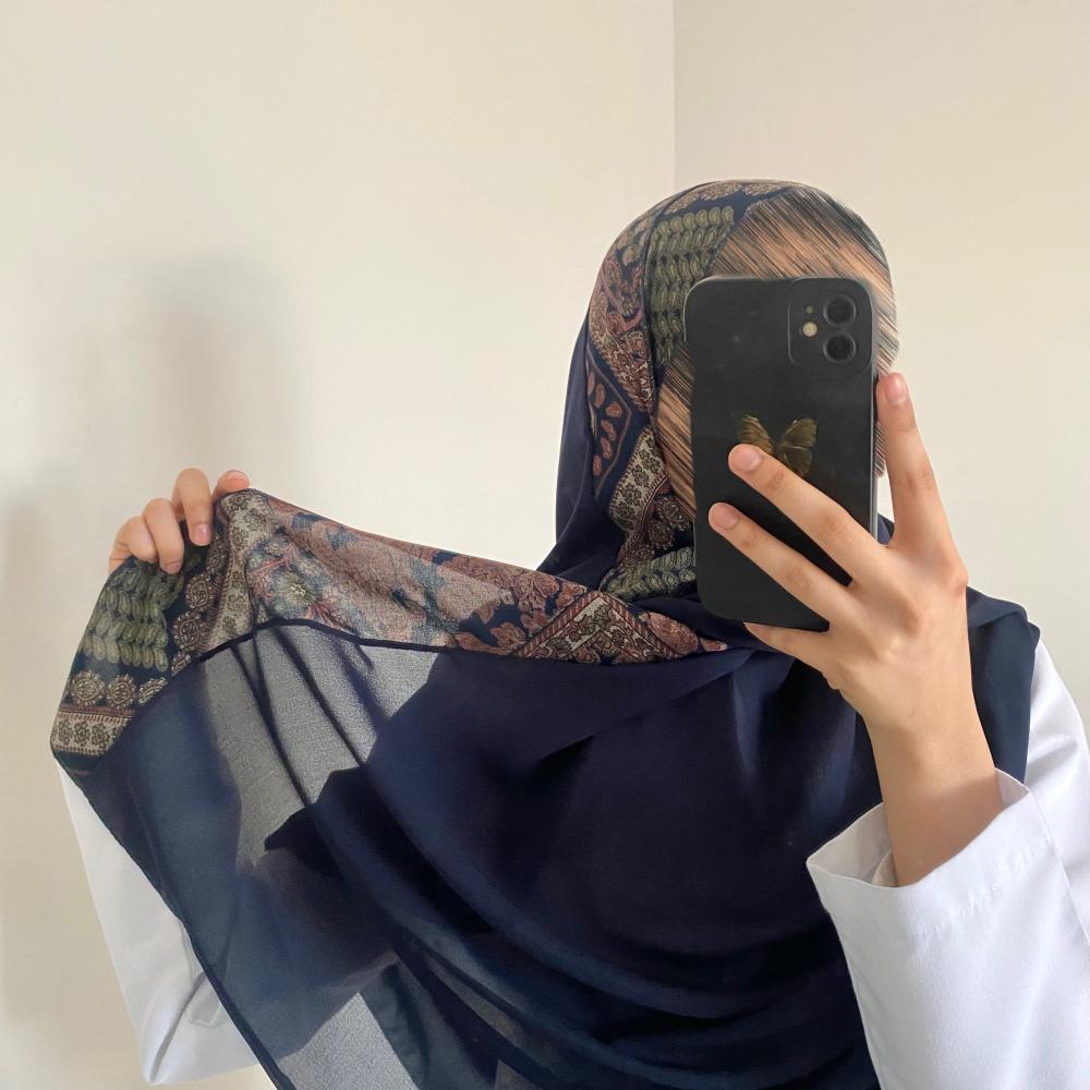طرحة سهى كشميري فيتنامي بنقش طرف لون كحلي A